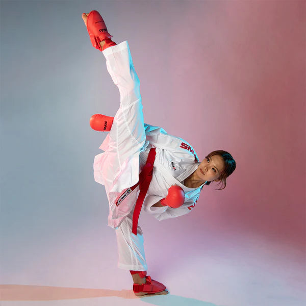 - Aprobado por la WKF para su uso en todos los eventos autorizados por la Federación Mundial de Karate. Sólo los equipos y prendas de la más alta calidad pueden obtener esta aprobación.